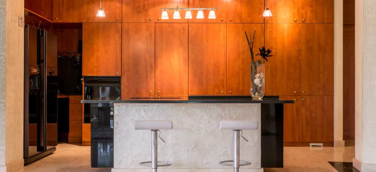 A high-end interior redesign of a beachfront penthouse, combining luxury with contemporary aesthetics. The open-plan living area features floor-to-ceiling windows, allowing for breathtaking ocean views. Key elements include a sleek modern kitchen with state-of-the-art appliances, a custom wine cellar, and a spa-like master bathroom with marble finishes. The design integrates smart home technology, ensuring both style and convenience in every space.